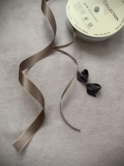 人気のサテンリボンのサイドにゴールドのメタリックラインを